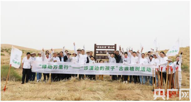 甘肃古浪县沙漠边的孩子迎来又一片“绿动未来爱心林”(央广网发 通讯员郑勇摄)