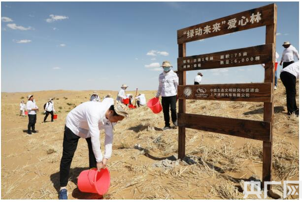 “绿动未来”志愿者前往六道沟沙区养护1号爱心林(央广网发 通讯员郑勇摄)