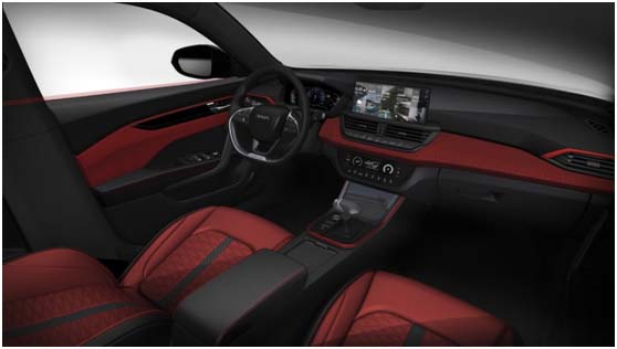 再来看看车内,奕炫武士版同样采用红黑撞色设计并融入赛道元素,完全符合年轻消费者的审美。独特的几何纹,融入赛道旗元素图案,层次丰富、主题分明,整体黑化及出挑的装饰线条,年轻运动,酷感十足。