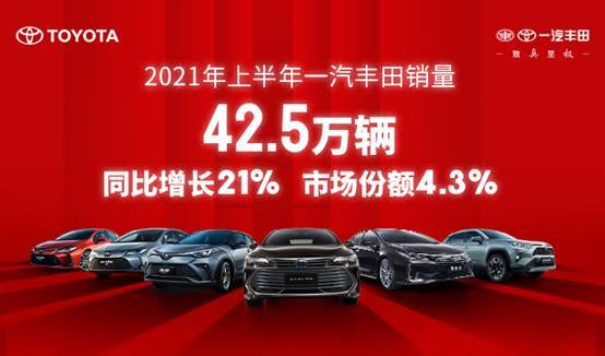 数据显示,2019年一汽丰田累计销售73.8万辆(含进口车),2020年累计销售80万辆(含进口车)。而今年1-6月,一汽丰田累计销量达成42.5万辆(含进口车),同比增长21%,市场占有率4.3%,以TNGA产品为主的一汽丰田整体销量再一次实现逆势上扬。