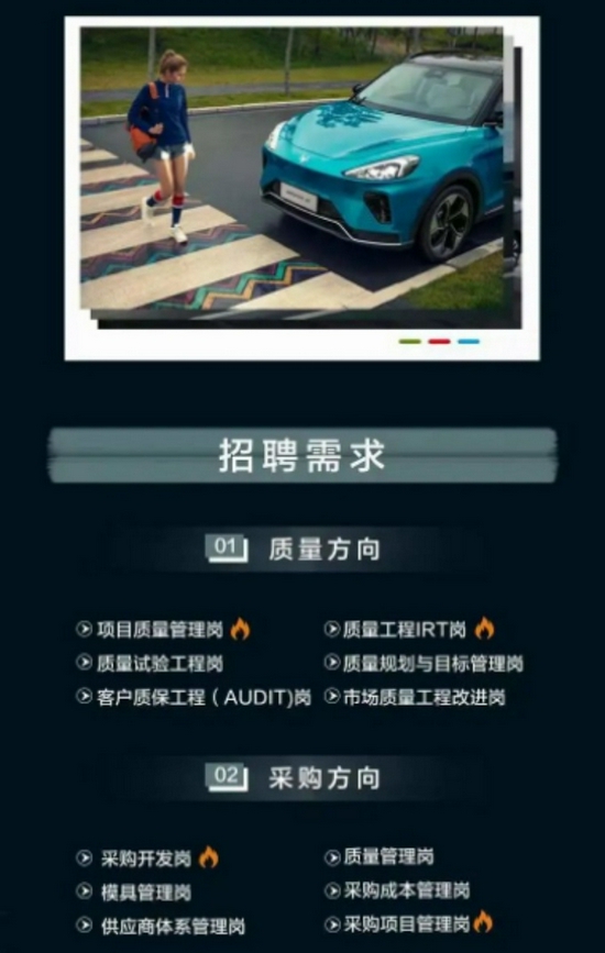 北汽蓝谷官方发布人才招募启事,本次招募主要集中在五大方向,分别是质量、采购、极狐品牌、信息数字化以及核心三电及智能网联方向,共涉及超80个岗位需求,几乎覆盖了前后端及技术端的全体系。