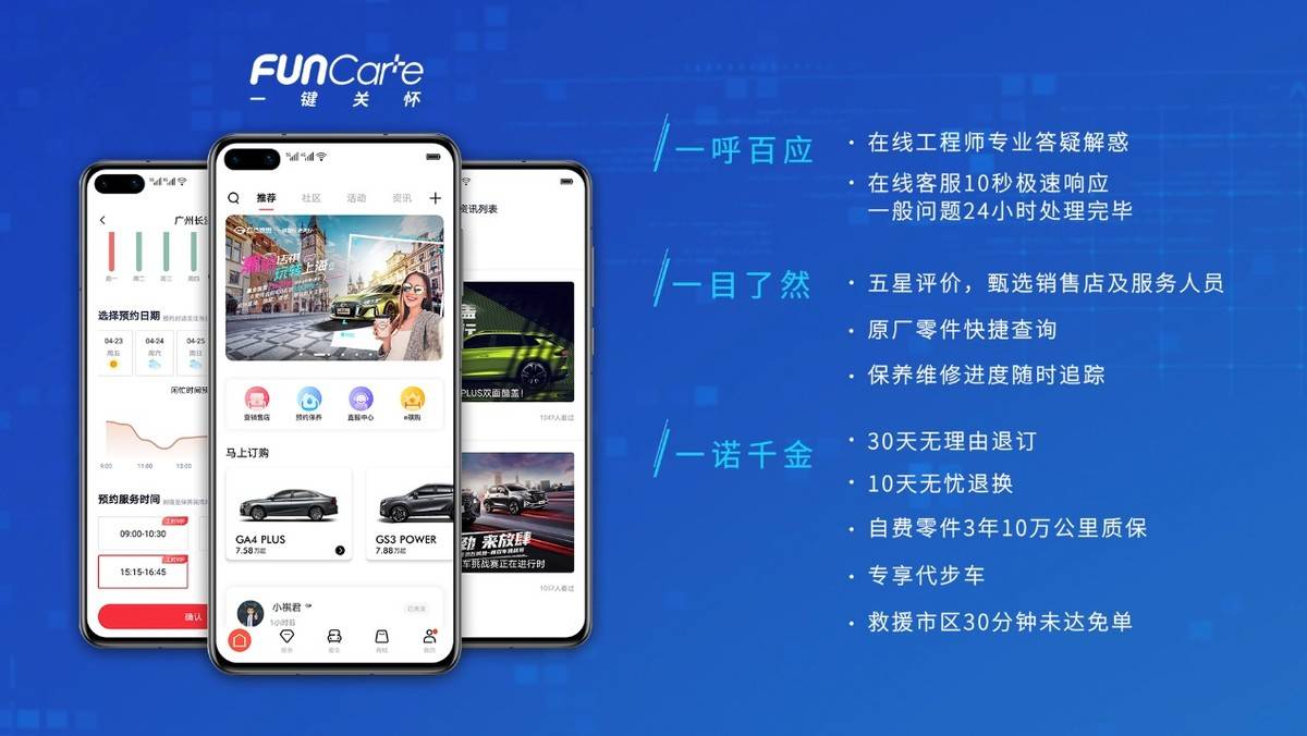 此外,今年,广汽传祺还推出Fun Car+e全新服务品牌下的“一键关怀,十大承诺”APP尊享服务,全面满足顾客需求。以“服务传祺”的形象打动人心,广汽传祺将成为更多消费者日常生活中贴心可靠的伙伴。