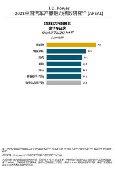 保时捷(761分)获得豪华车品牌第一,雷克萨斯(749分)和路虎(744分)排名第二和第三。