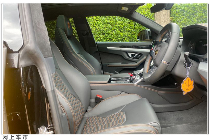 内饰上,兰博基尼Urus采用真皮包裹,配备三辐式平底方向盘,座椅具有加热功能,头枕上配有兰博基尼标识,座椅及车内细节处还采用橘黄色缝线进行勾勒。同时,车内还配有全液晶仪表、两块嵌入式中控屏和多个六边形空调出风口,下方还配有造型设计十分独特的换挡机构,车内总体造型科技感十分浓厚。