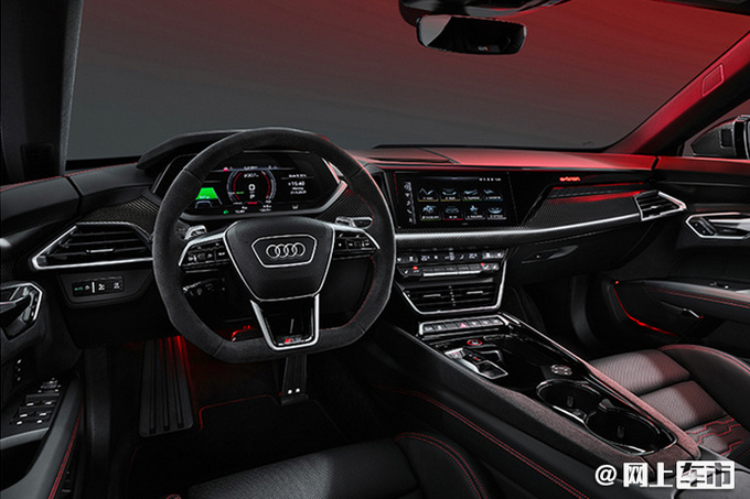 内饰方面,e-tron GT采用了相对简约的设计,不过仍然营造出应有的科技感、豪华感。新车配备12.3英寸全液晶仪表,中控屏为10.1英寸,内置最新智能互联系统,另外奥迪还打造了运动声学音效系统,用以模拟更真实的声浪效果。