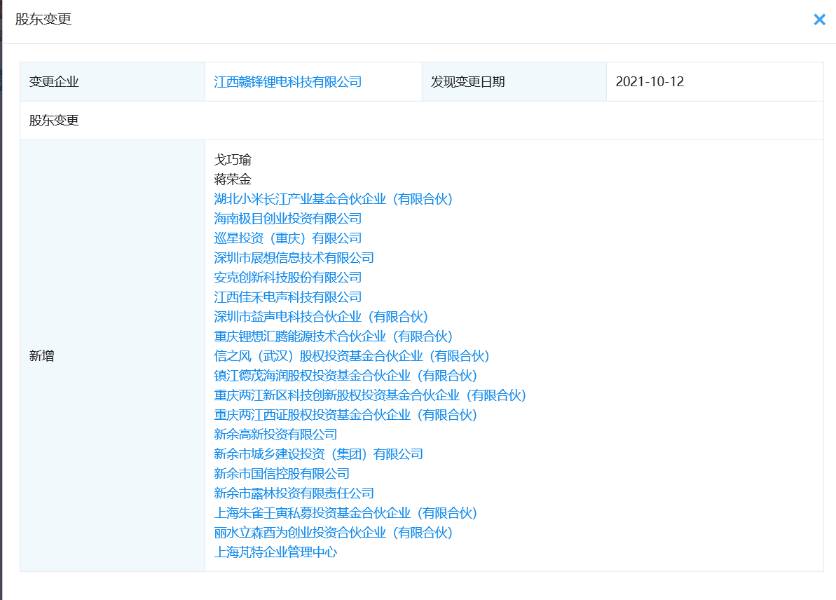 事实上,这也已经不是小米第一次投资赣锋锂电。7月31日,赣锋锂业披露公告显示,拟对控股子公司赣锋锂电增资20亿元,小米产投等投资机构拟对赣锋锂电增资9.71亿元。