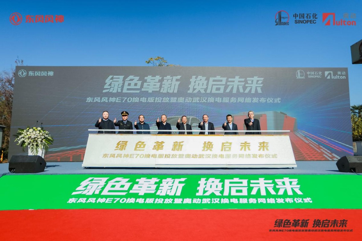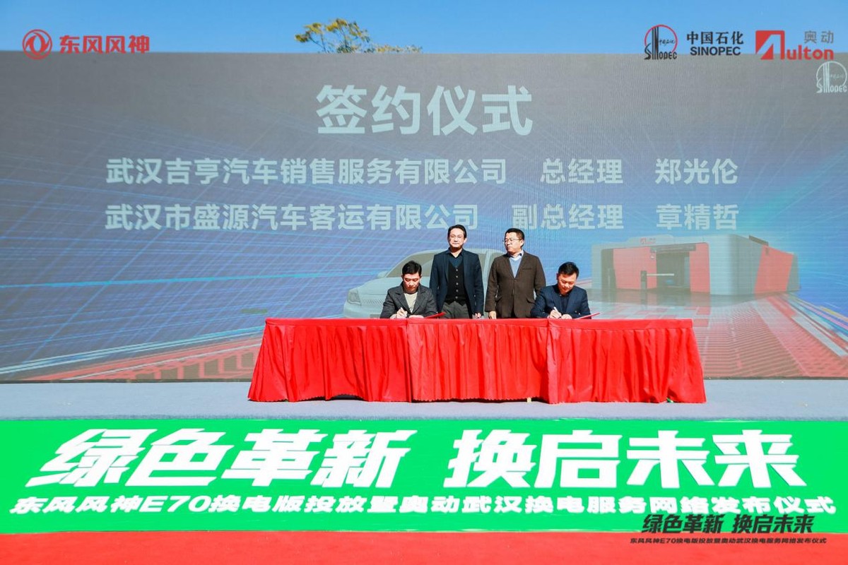 11月30日东风风神换电版投放暨奥动武汉换电服务网络发布仪式在武汉举行。首批100台东风风神E70换电车型投放武汉网约车、出租车市场的同时,现场签约E70换电车型订单800台。这也标志着武汉