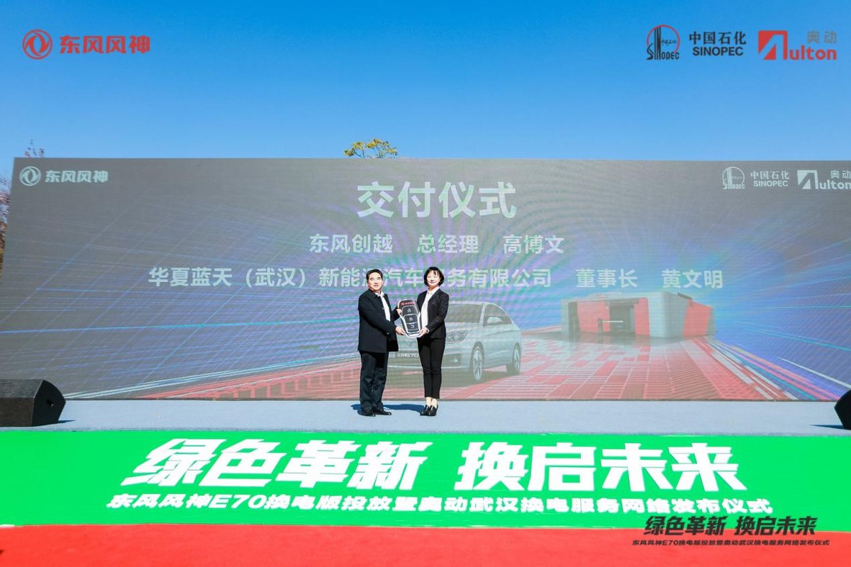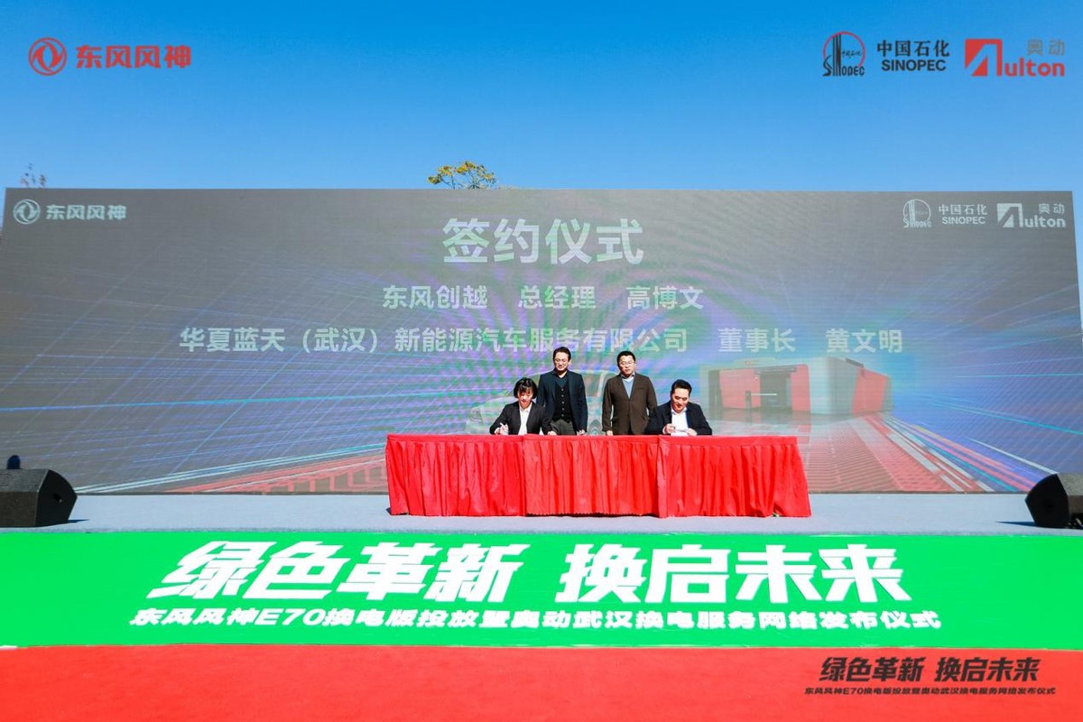 投放仪式上,东风风神E70换电车型还斩获800台订单,含东风创越与华夏蓝天(武汉)新能源汽车服务有限公司签约的500台,武汉吉亨汽车销售服务有限公司与武汉市盛源汽车客运有限公司签约的300台。