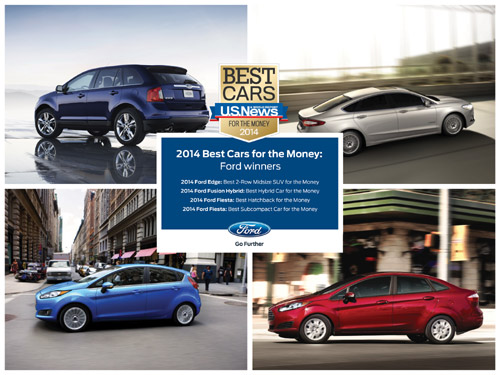 · 2014年2月12日,美国密歇根州迪尔伯恩——《美国新闻和世界报道》发布其刚出炉的“美国年度最值得购买车型”评选榜单,共计有225款车型为21个组别项目进行激烈角逐。最终,福特汽车公司旗下的锐界、嘉年华和Fusion混合动力3款车型共摘得4项桂冠,成为获奖最多的美国汽车公司,福特品牌也成为上榜次数最多的汽车品牌。