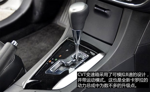 一键启动全新卡罗拉,伴着海风驰骋于大海之滨,绝对是一种令人心旷神怡的高级享受。专为中国开发的手自一体8速S-CVT超智能无级变速器,为全新第11代COROLLA卡罗拉带来动力技术的全新突破,使换档更为平顺,但明显的档位变化却更有驾驶乐趣。全新卡罗拉的8速S-CVT提供了适合三种不同场景的驾驶乐趣,分别是盘山路、城市道路和高速公路。S-CVT的电脑和发动机的电脑相互配合作用,使S-CVT在发动机最适合的低转速时换档,增强燃油经济性。在高速公路模式,追求驾驶乐趣的情况下,深踩油门,变速器能使发动机推到很高的转速,保证动力输出。而在城市行驶,匀速低速情况下,变速器又可以主动控制发动机的转速,节省燃油。