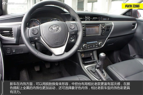 进入车中,全新卡罗拉的内饰设计也同样体现“先进质感”的核心概念,贯穿左右面板的横向银色装饰条打造出富有层次感的宽敞驾驶空间,使用了柔软材质的中控台及室内装饰,加上兼具手套箱照明功能的LED蓝色氛围灯,共同演绎出极具质感和生活气息的室内空间。