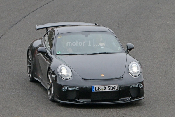 谍照记者最近在纽伯格林赛道拍到了正在测试的保时捷911 GT3改款车。911 GT3将与911和911 Turbo遵循相同改款路线,仍采用渐进式改款,因此一眼就可以辨识出来。新车外观改款包括采用新的前保险杠,改款LED日间行驶灯和新的尾灯组。而量产版还将配备新的前大灯和改款车门把手。车厢内配备新的保时捷通讯管理系统,不仅集成7英寸显示屏,而且支持多点触控技术,兼容苹果CarPlay,升级后的导航系统可提供实时交通信息。新的方向盘带一个旋转环,可选择不同驾驶模式,包括正常、运动、运动强化和个性化模式。该车动力系统是在现行版搭载的3.8升六缸引擎基础上进行升级,目前还不清楚新引擎功率。但现行版功率为475马力,扭矩325磅-英尺(约合440牛米),车辆0-96公里/小时加速时间3.3秒,最高时速195英里(约合314公里)。
