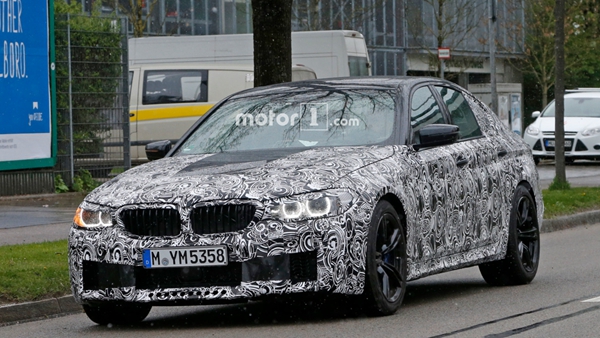 宝马正在开发下一代5系,新车将于今年秋季发布以庆祝车厂成立100周年。而该车的高性能版M5将于明年发布,最近谍照记者拍到了该车最新照片。这款车采用了最终量产版的前大灯,不过大灯造型很熟悉,内部采用LED日间行驶灯并集成转向灯。车尾可以看到重度伪装的尾灯组,其造型似乎与7系的尾灯组一样。新款M5虽然采用渐进式改款,但相对于现行版仍有很大改变。比如,该车是首款可选装xDrive全驱系统的车型,引擎产生的动力可以传递到四个车轮。另外,新一代M5将不再提供手动变速器,宝马此举是由于六速手动变速器的“市场需求近乎为零”。无论是后驱还是四驱版本,新一代M5将搭载4.4升M TwinPower Turbo V8引擎,功率460千瓦/625马力,比老款车增加18千瓦/25马力。后驱版百公里加速时间3.7或3.8秒,最高时速超过322公里。在新一代M5于明年底发布之前,宝马还将推出新一代5系轿车、旅行车和5系GT。