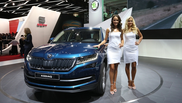 斯柯达在巴黎车展首次向公众展示了Kodiaq SUV,该车随后将进入包括中国在内的全球市场,竞争车型包括现代胜达和汽油索兰托。该车行李箱容积在后排椅背直立情况下达到720立升,如果将椅背放平则提升至2065立升。即便选装第三排座椅,乘客在第三排座椅也可获得充裕空间。而标配的双排座椅布局,第二排座椅可以前后移动达到18厘米。该车采用大众的MLB平台,长度为4.7米,也是同级车型中最大的一款之一。虽然车身很大,但很轻,重量为1452公斤。入门级车型搭载一台1.4升TSi汽油引擎,功率92千瓦/125马力,该引擎也有110千瓦/150马力功率可选;而另一台2.0升TSi引擎功率140千瓦/190马力。而欧洲消费者偏爱的2.0升TDi柴油引擎功率有150马力和190马力两种。根据不同的引擎,可搭配六速手动,六速或七速DSG双离合器变速器,而根据引擎和变速器不同,可选择前轮或四轮驱动。该车还标配或选装多种安全设备,包括自动紧急制动,全景摄像头,后排障碍物警示和车道保持辅助系统。Kodiaq将于明年初上市。