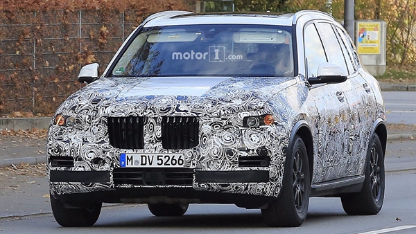 现行版宝马X5(F15)是在三年前上市的,但宝马已经计划推出其新一代车型(G05)了。最近谍照记者拍到了采用量产版车身的照片。虽然该车扔采用的是临时安装的前大灯和尾灯组,但已经很接近最终量产版了。如果把云纹伪装拿掉就会发现新车外观与现行版非常接近。虽然如此,但仔细看会发现一些不同,包括进一步扩大的双肾格栅和改款前后保险杠,而双排气尾管也略宽,让新款X5尾部造型更突出运动风格。随着新款X3车身尺寸的进一步增加,预计下一代X5页将略微增大。原型车的轮拱似乎更宽一些,或许这是由于测试车采用更小轮胎造成的错觉。尽管新车的尺寸更大,但车重不会增加。相反,由于采用CLAR平台,更多的利用了铝制金属和碳纤维材质,车重还将进一步降低。宝马全新开发的X7页将基于X5,这款七座SVU还将增加一款四座超豪华衍生版本,该车售价将超过10万美元。新一代X5很可能作为2018款车型于明年低发布,而X7则作为2019款车型于2018年底发布。这两款车都将在美国斯帕滕伯格工厂投产,该厂还生产X3、X4和X6。